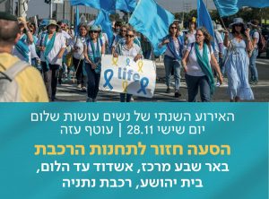 28.11.25 האירוע השנתי של נשים עושות שלום – הסעות משער הנגב לתחנות הרכבת בדרום ובשרון